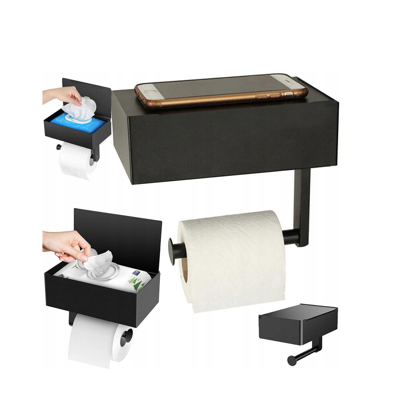 Laikiklis tualetinio popieriaus su lentynėle, juoda sp. 27242