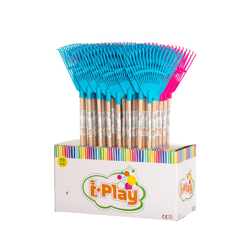 Grėblys-šluota vaikiškas medinis kotas 73 cm rožinis 316970/329759