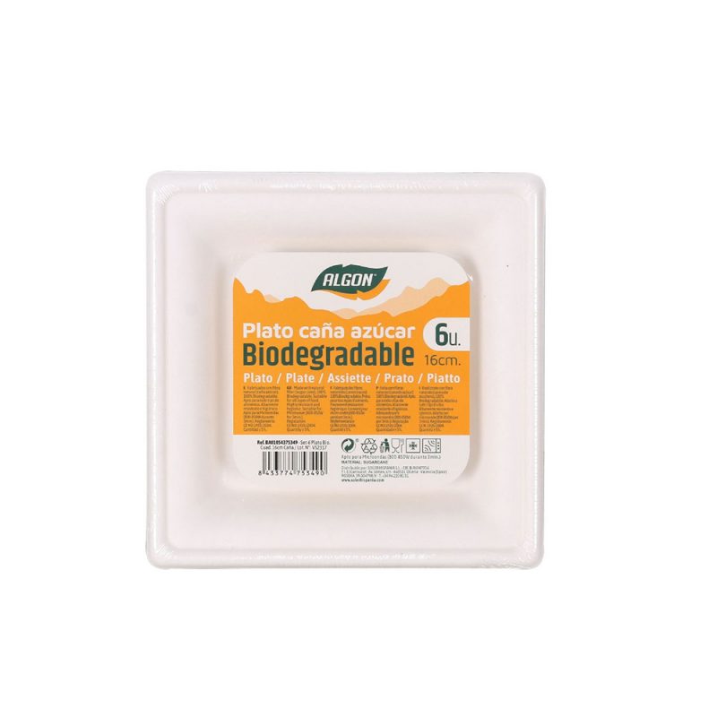 Lėkštės vienkartinės BIO kompostuojamos 16×16 cm 6 vnt Algon BA01054375349
