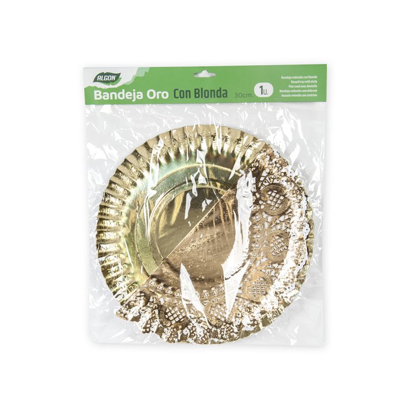 Vienkartinis padėklas maistui D30 cm aukso spalvos Algon BA01043175331