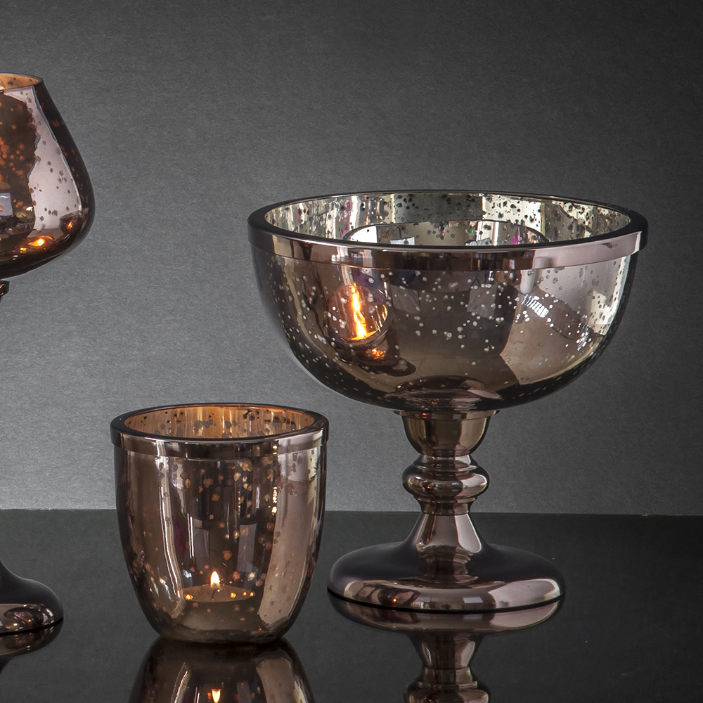 Žvakidė stiklinė bronzinė spl. 11.5×11.5×12.5 DECOSILUET