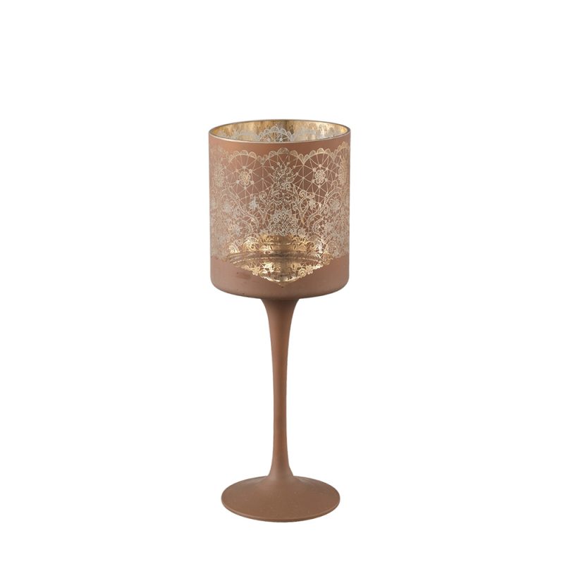 Žvakidė stiklinė ruda 9x9x25 cm (žvakės diam. iki 8 cm) Opix PTMD 105749